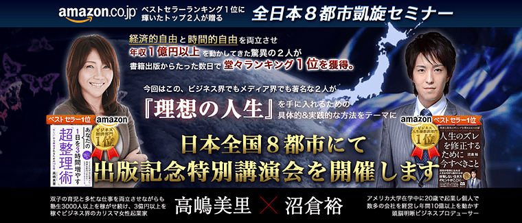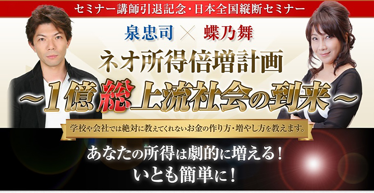 最近は世界の億万長者と共に、世界各国を回りセミナーを開催し、ファミリー全員をお金持ちにするための 活動をメインに行っていた。 それを中心に、多くの億万長者を増やし、自立し輝ける個人を量産することで、日本を更に元気に明るく底上 げしていくことに生涯を捧げることに尽力している。