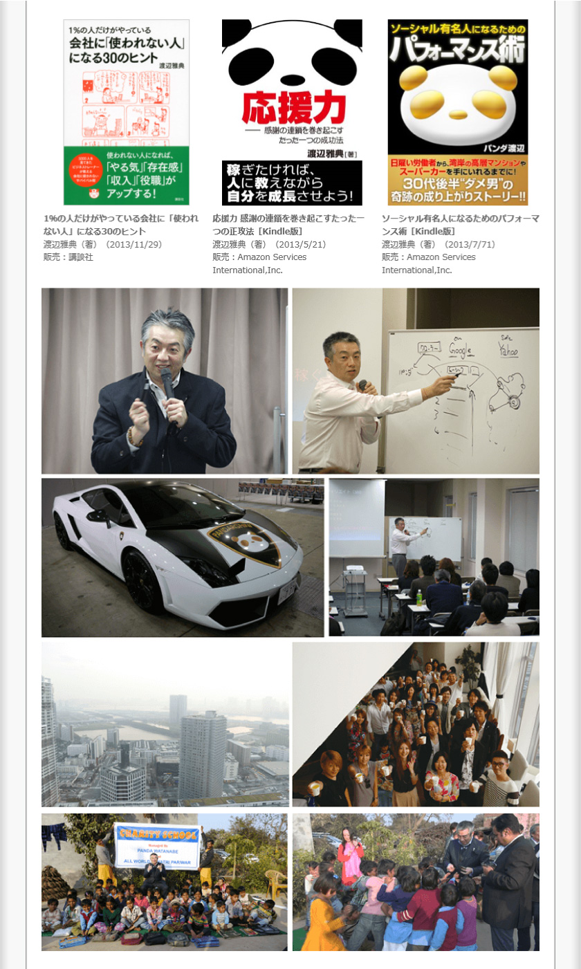 渡辺雅典氏と共に生徒へ稼がせてきた報酬額は総額で 50 億円以上。 既に自立した生徒の成功事例まで含めると、150 億円とも 200 億円ともいった莫大な金額を生徒にもたらせている ほどの、インターネットビジネス業界で No1 カリスマ指導者として広く認められている。
