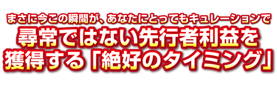 つまりこのチャンスをつかめば、まさに先行者利益中のさらに上澄みの先行者利益を狙うチャンスが