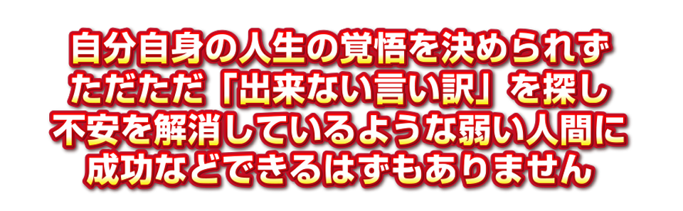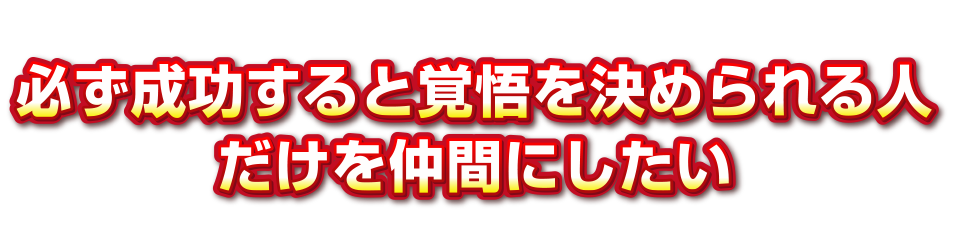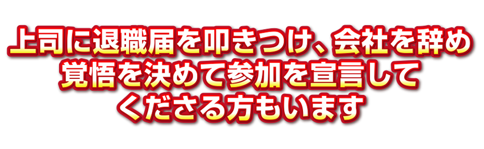 それに対し不服を感じるような最初から逃げを意識している方も、申し込み自体をしないようにお願いいたします。何が何でも言い訳せずに必ず成功すると覚悟を決められる方だけに参加していただきたい趣旨とお願いです。)